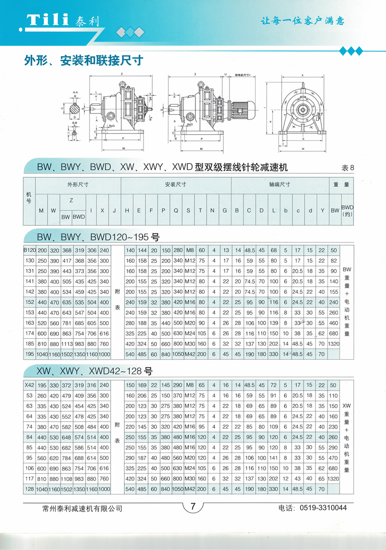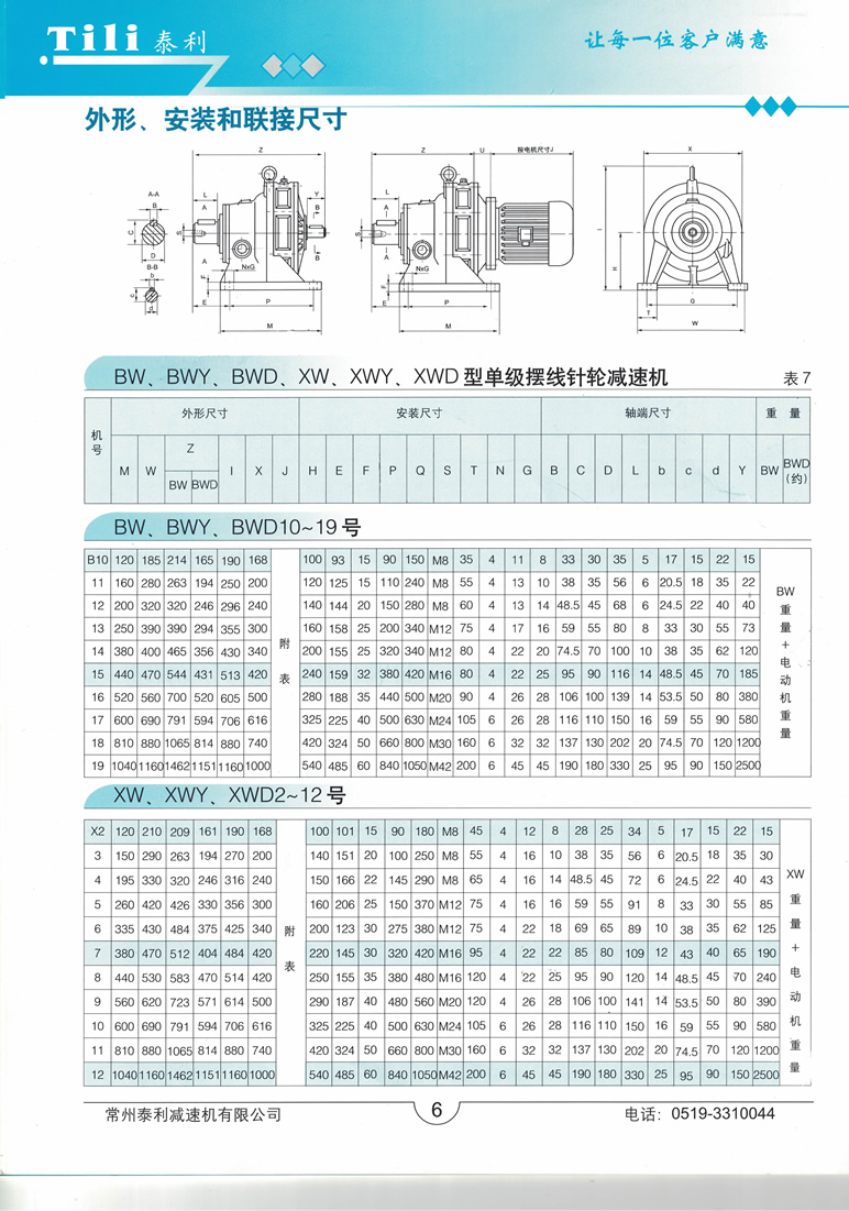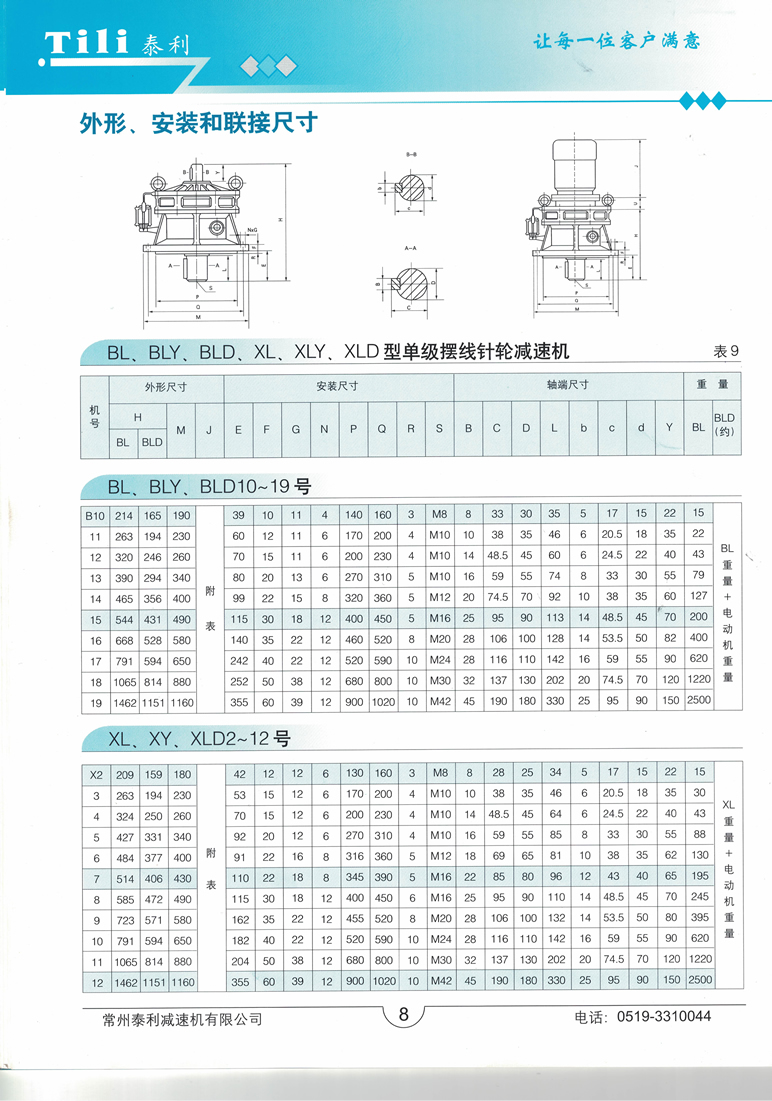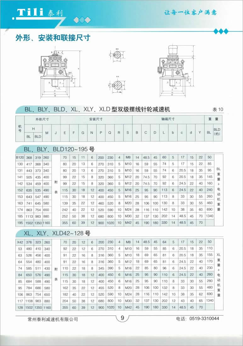 泰利B/X系列擺線針輪減速機(jī)外形安裝尺寸圖