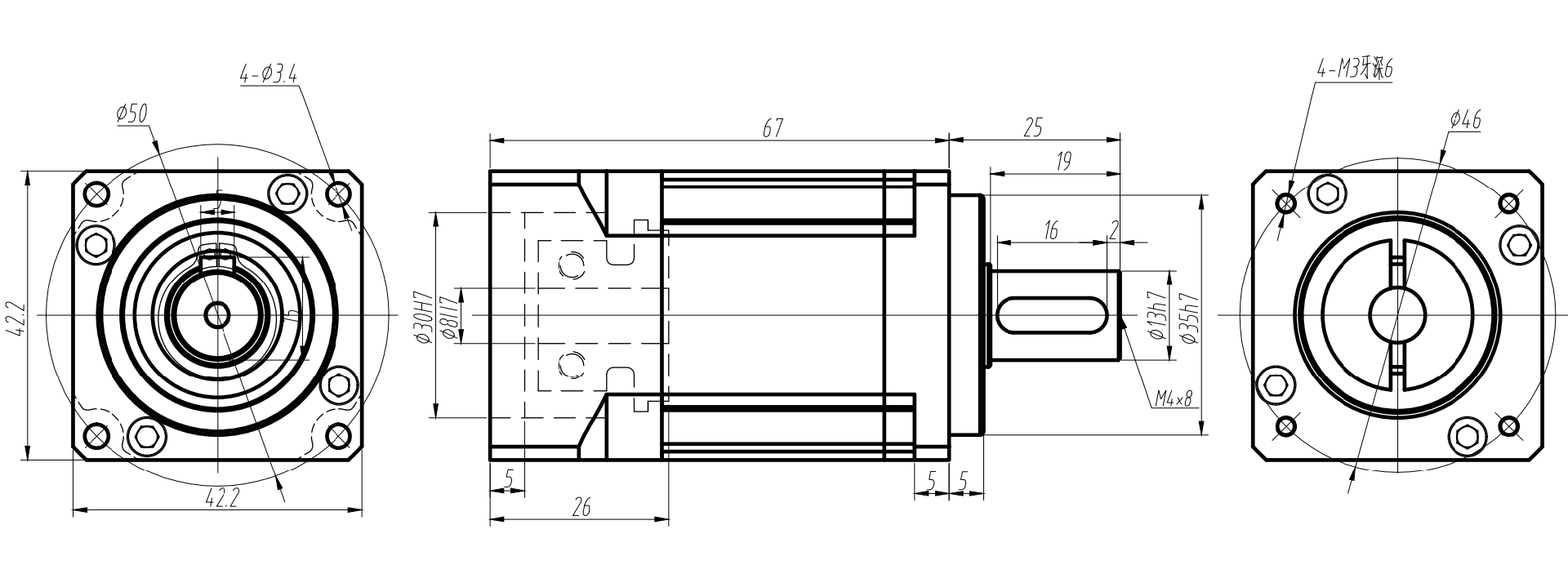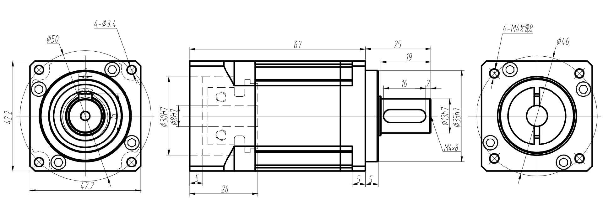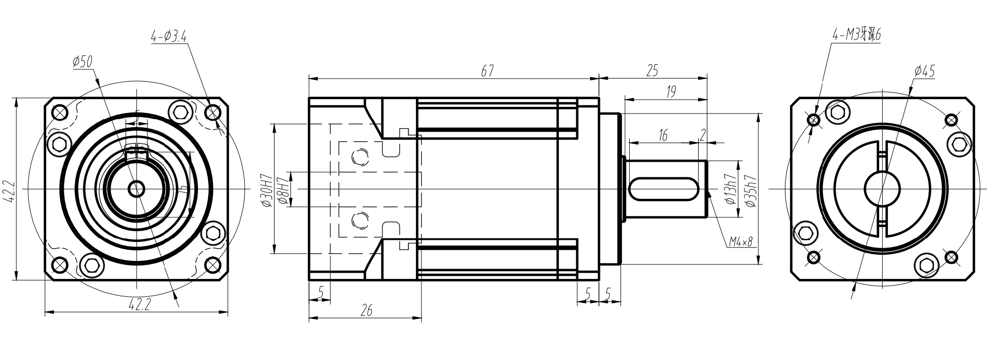 雙級(jí)TB42/AB42精密行星減速機(jī)外形