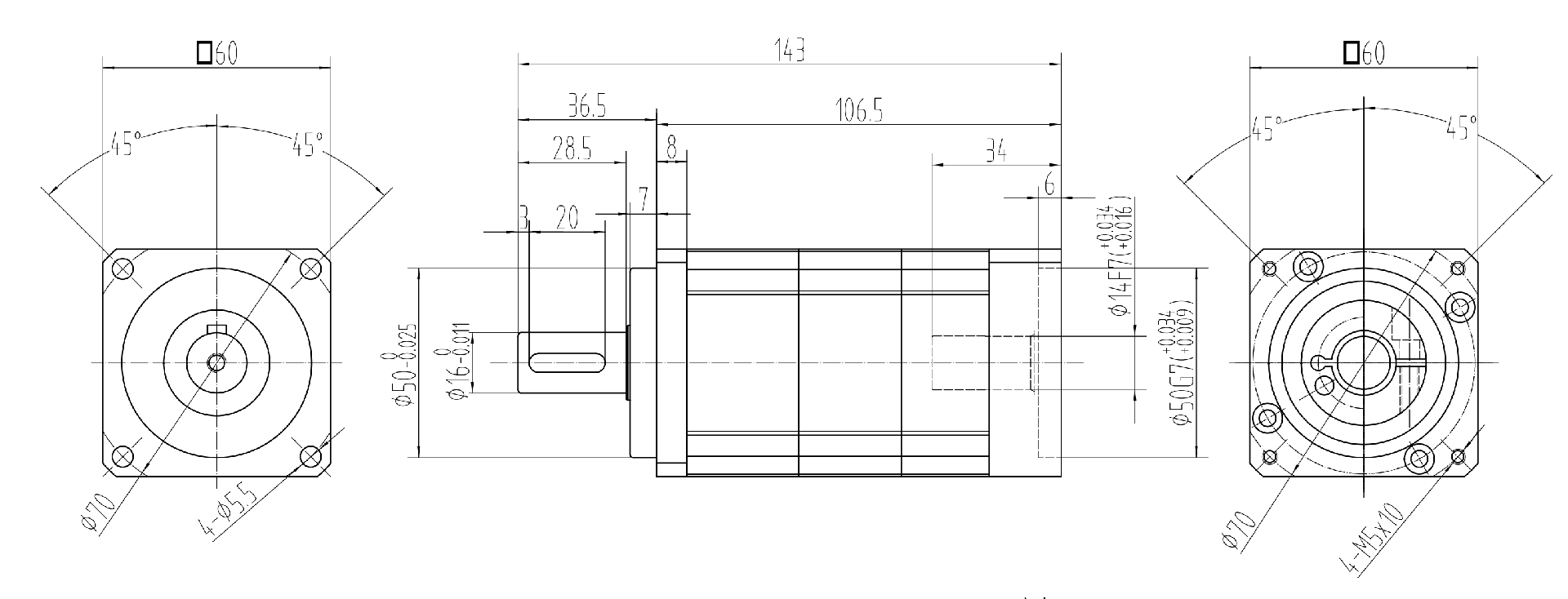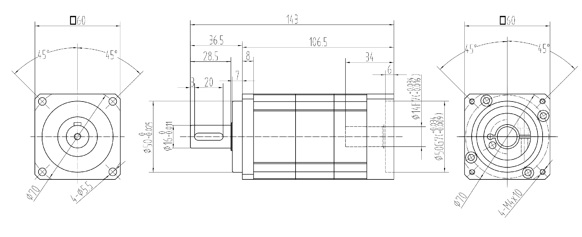 單級(jí)TB60/AB60斜齒精密行星減速機(jī)外形