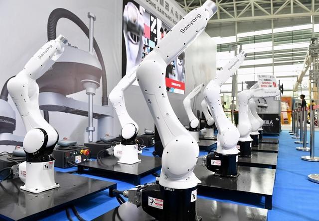 圖5博覽會(huì)上的國(guó)產(chǎn)工業(yè)機(jī)器人/新華社 作者:沙達(dá)提