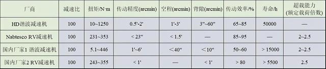 根據(jù)相關(guān)資料國(guó)內(nèi)外減速機(jī)的主要性能參數(shù)如表1所示。在基本相同的轉(zhuǎn)速和功率下,Nabtesco的RV減速機(jī)和國(guó)產(chǎn)RV減速機(jī)的輸出扭矩范圍基本相當(dāng),說(shuō)明在傳動(dòng)扭矩上國(guó)內(nèi)已經(jīng)可以與國(guó)外相媲美。而國(guó)產(chǎn)的RV減速機(jī)包括諧波減速機(jī)在內(nèi)的齒輪壽命、傳動(dòng)精度等方面距離國(guó)外還有較大差距。比如國(guó)內(nèi)的諧波減速機(jī)齒輪壽命目前能夠做到1.5萬(wàn)小時(shí),而同規(guī)格的國(guó)外的齒輪壽命能做到5萬(wàn)小時(shí)。但好在國(guó)內(nèi)的產(chǎn)品經(jīng)過(guò)幾年的發(fā)展,減速機(jī)齒輪的壽命已經(jīng)從9000小時(shí)提高到1.5萬(wàn)小時(shí),發(fā)展勢(shì)頭可喜。