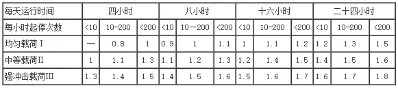 1、選型時(shí)要首先確定使用系數(shù)fB,可以通過下面的計(jì)算公式參照每天的工作時(shí)間總和:每小時(shí)的開/關(guān)次數(shù);由重力加速度計(jì)算出的負(fù)載等級(jí)等幾項(xiàng)參數(shù)計(jì)算fB。