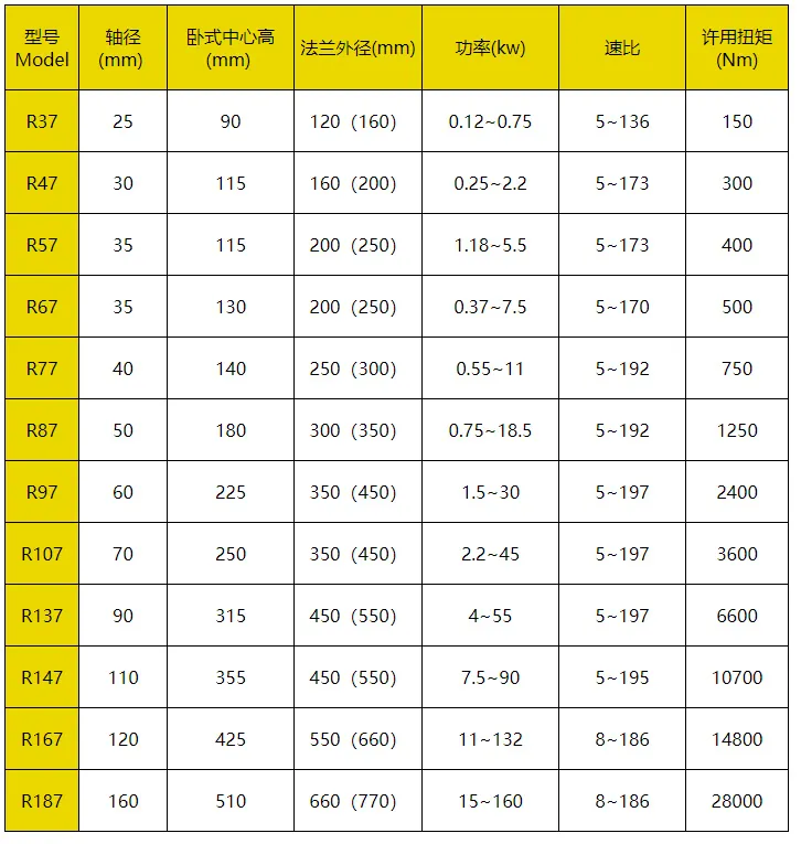 R系列減速機(jī)的輸入功率及許用扭矩: