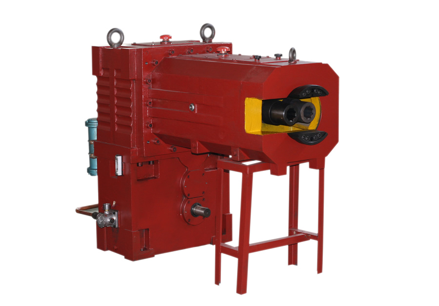 SZL系列立式錐形雙螺桿擠出機(jī)減速機(jī)是與錐形雙螺桿塑料擠出機(jī)配套的專用傳動(dòng)裝置。該齒輪箱由減速箱與分配箱兩部分組成,可經(jīng)電機(jī)動(dòng)力減速增扭后,輸出至分配箱,再通過分配箱一對(duì)1:1傳動(dòng)比的小錐角螺旋齒輪驅(qū)動(dòng)雙軸(兩軸夾角與螺桿夾角相同),帶動(dòng)螺桿以異向外旋的方式運(yùn)轉(zhuǎn)。二、產(chǎn)品特點(diǎn)